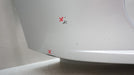 CRACK AND DENT ON LEFT DRIVER SIDE AND SOME SCRATCHES THROUGHOUT BUMPER