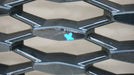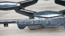 CRACKS IN MESH ON DRIVERS SIDE, 2 CRACKED TOP TABS, SCRATCHES ON SURFACE OF GRILLE